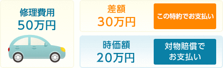対物全損時修理差額費用特約は、事故相手の自動車の修理費が時価額を上回る対物事故で、相手方が
